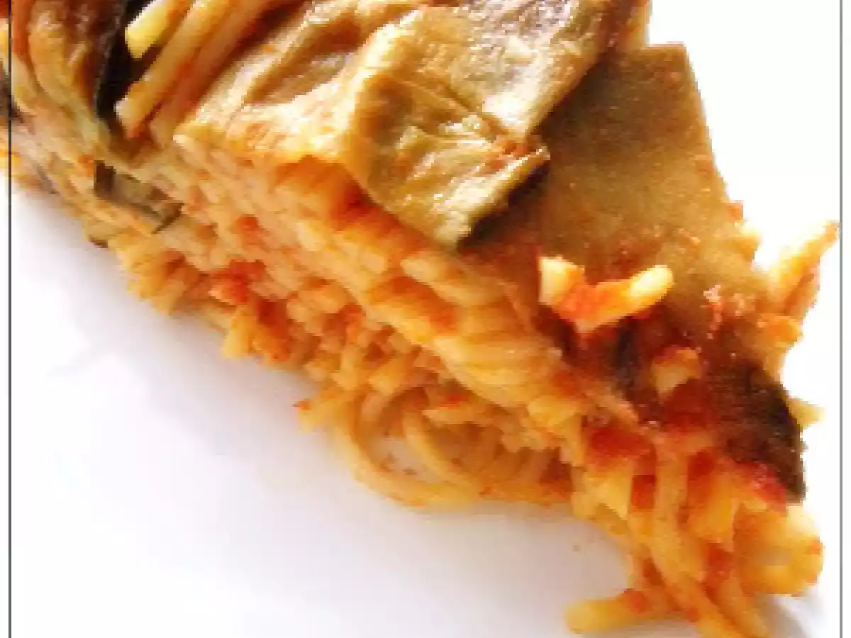 Timballo di spaghetti vota adesso PrecedenteProssimo Portata principalefacile1 h 25 m768 Kcal Invia questa ricetta ad un amico Stampa la ricetta Contatta l'autore della Ricetta Pubblica la foto di questa ricetta Ingredienti 4 3 grosse Melanzane nere ovali 1 L di Sugo di pomodoro fresco 500 g di Spaghetti 3 cucchiai abbondanti di Caciocavallo grattugiato 200 g di Mozzarella o scamorza bianca Sale e Olio evo Costo stimato: 6.82Euros€ (1.71€/Porzioni)