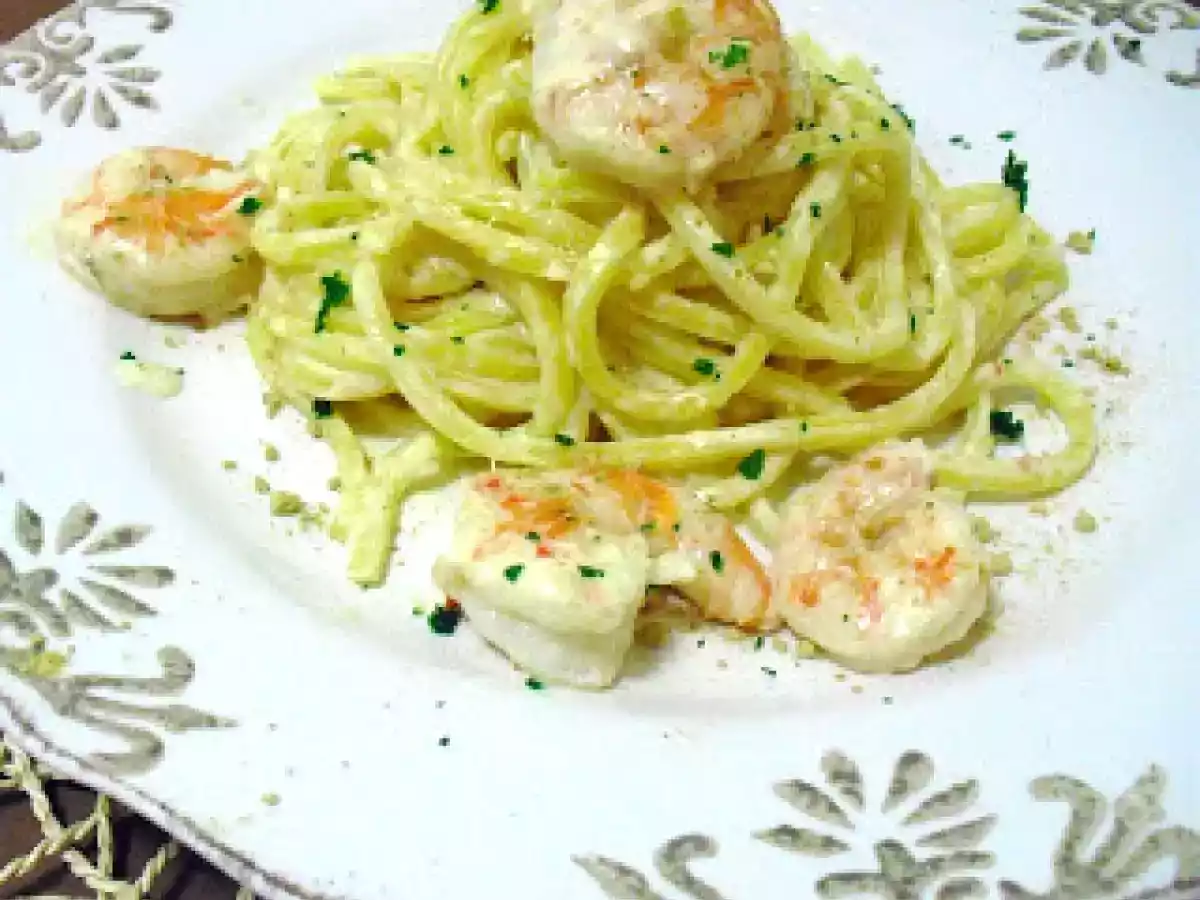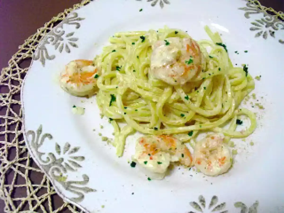 Tonnarelli con gamberi e mascarpone al profumo di zenzero PrecedenteProssimo Portata principalefacile25 min Invia questa ricetta ad un amico Stampa la ricetta Contatta l'autore della Ricetta Pubblica la foto di questa ricetta Ingredienti 4 500 g di tonnarelli 250 g di mascarpone 400 g di gamberi medi freschi prezzemolo tritato 1 cucchiaio raso di zenzero in polvere 1 spicchio d'aglio 1/2 bicchiere di brandy sale e olio evo qb