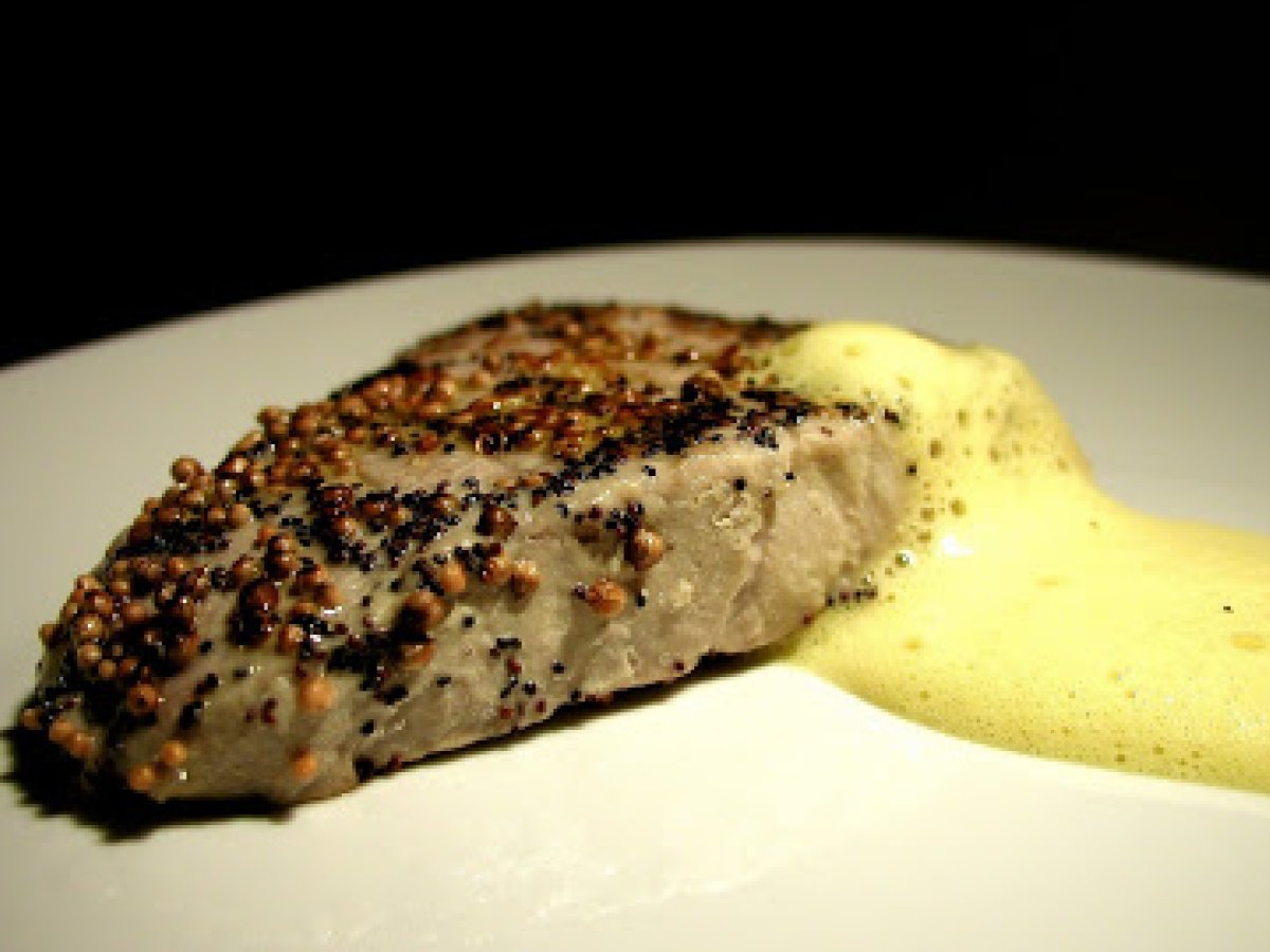 Tonno ai 3 semi ... con zabaglione alla birra vota adesso Portata principalefacile45 min Invia questa ricetta ad un amico Stampa la ricetta Contatta l'autore della Ricetta Pubblica la foto di questa ricetta Ingredienti 2 1 fetta di tonno salvia rosmarino olio ev.o. sale pepe nero buccia limone grandi di coriandolo, di senape e di papavero 1 spicchio di aglio Per lo zabaglione: 1 tuorlo 30/40 g circa di birra una macinata di pepe nero 1 cucchiaino di colatura di alici
