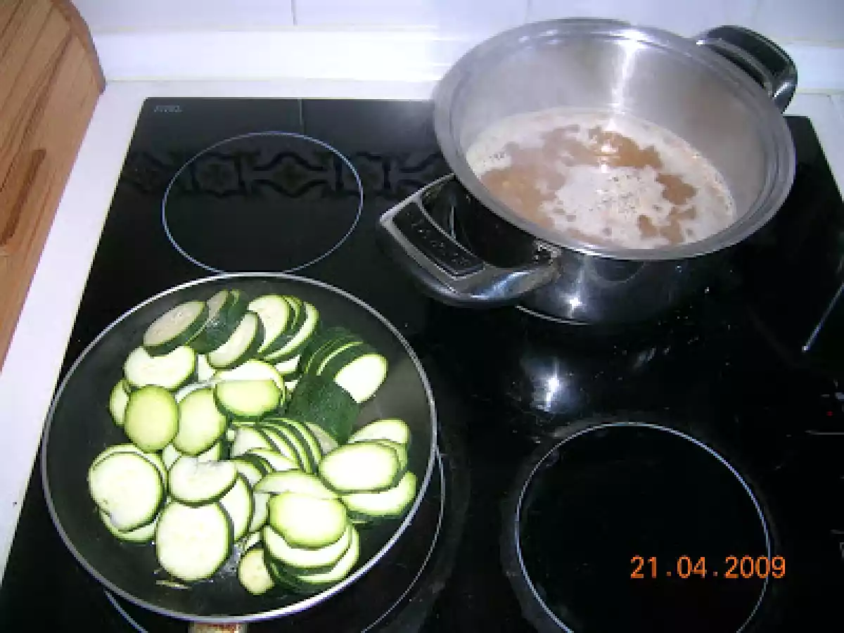 Per il piatto, non mangiare il riso, ma con zucchine gratin.