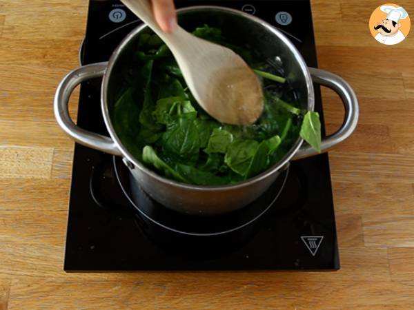 Sbollentate gli spinaci in acqua salata per 3 minuti. Poi scolateli.