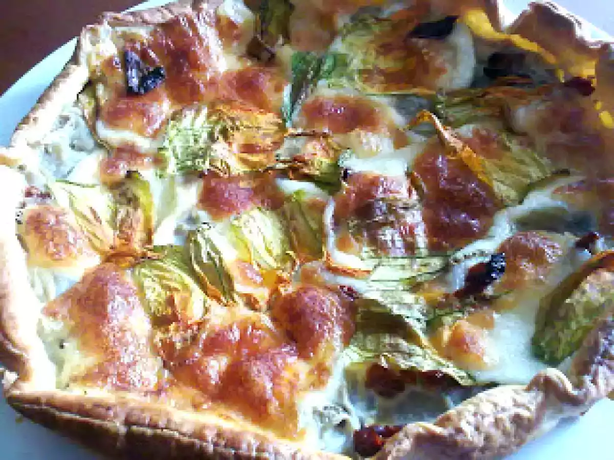 Torta rustica con melanzane, scamorza e fiori di zucca... Portata principalefacile40 min Invia questa ricetta ad un amico Stampa la ricetta Contatta l'autore della Ricetta Pubblica la foto di questa ricetta Ingredienti 4 1 rotolo di sfoglia rustica 500 g melanzane viola 250 g scamorza 1 uovo intero e 1 albume 3 pomodori secchi aglio in polvere 6/8 fiori di zucca sale qb