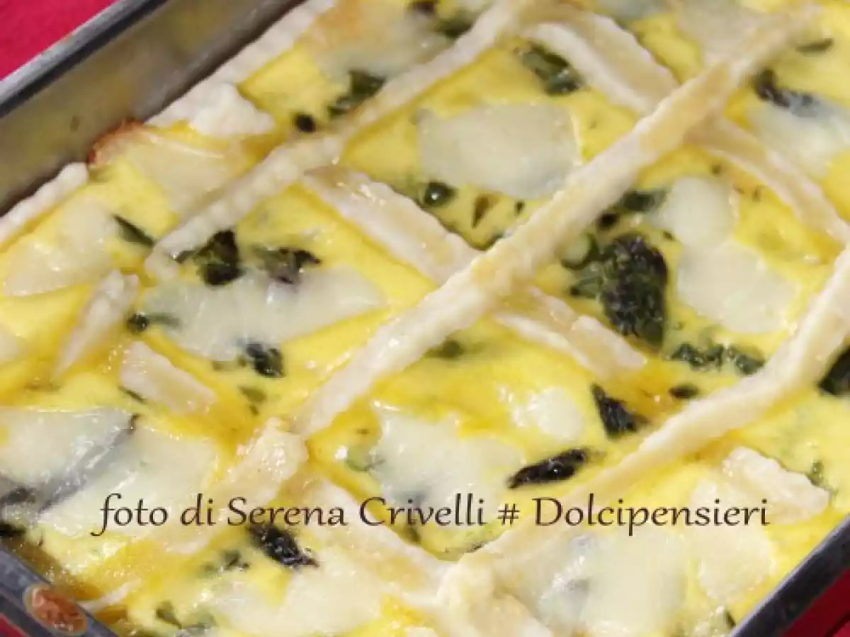 Torta salata asparagi e taleggio val biandino di dolcipensieri Portata principalemedia48 min Invia questa ricetta ad un amico Stampa la ricetta Contatta l'autore della Ricetta Pubblica la foto di questa ricetta Ingredienti 6 PER LA PASTA 300 grammi di farina 00 150 grammi di burro leggermente salato latte intero PER FARCIA 3 uova 400 grammi di asparagi 150 grammi di taleggio Val Biandino 50 grammi di panna da cucina un pizzico di pepe una noce di burro per la tortiera.
