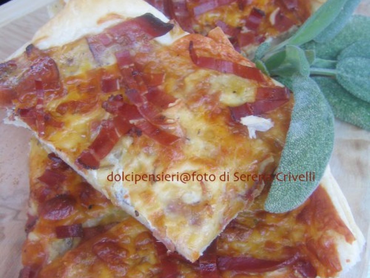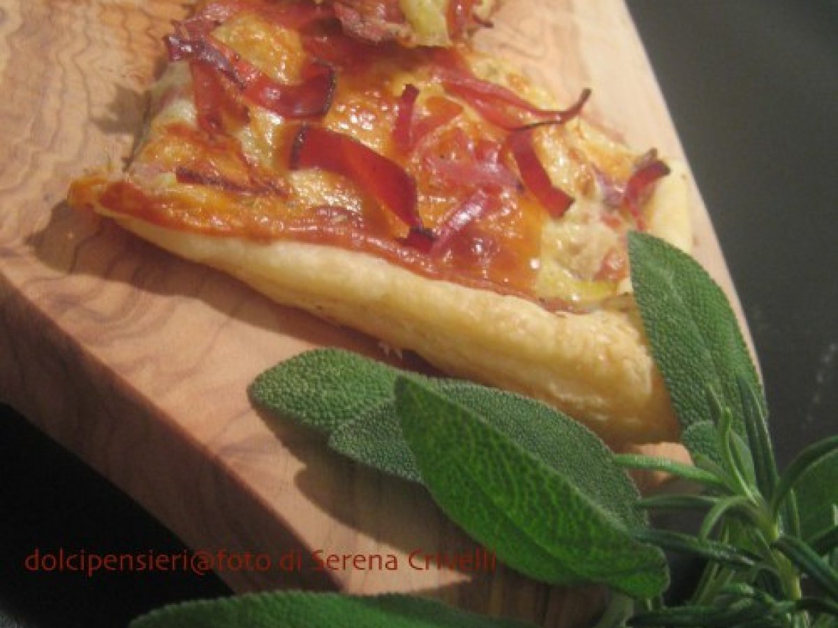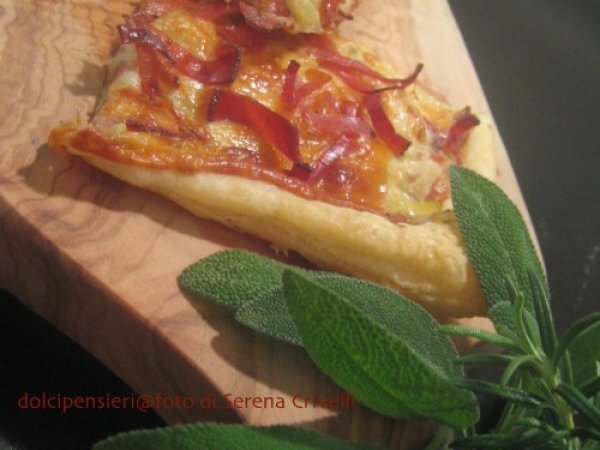 Torta salata con asiago e speck di dolcipensieri PrecedenteProssimo Portata principalefacile45 min Invia questa ricetta ad un amico Stampa la ricetta Contatta l'autore della Ricetta Pubblica la foto di questa ricetta Ingredienti 4 un rotolo di pasta sfoglia 100 g di asiago a fette 75 g di zola dolce 100 g di speck a listarelle una noce di burro