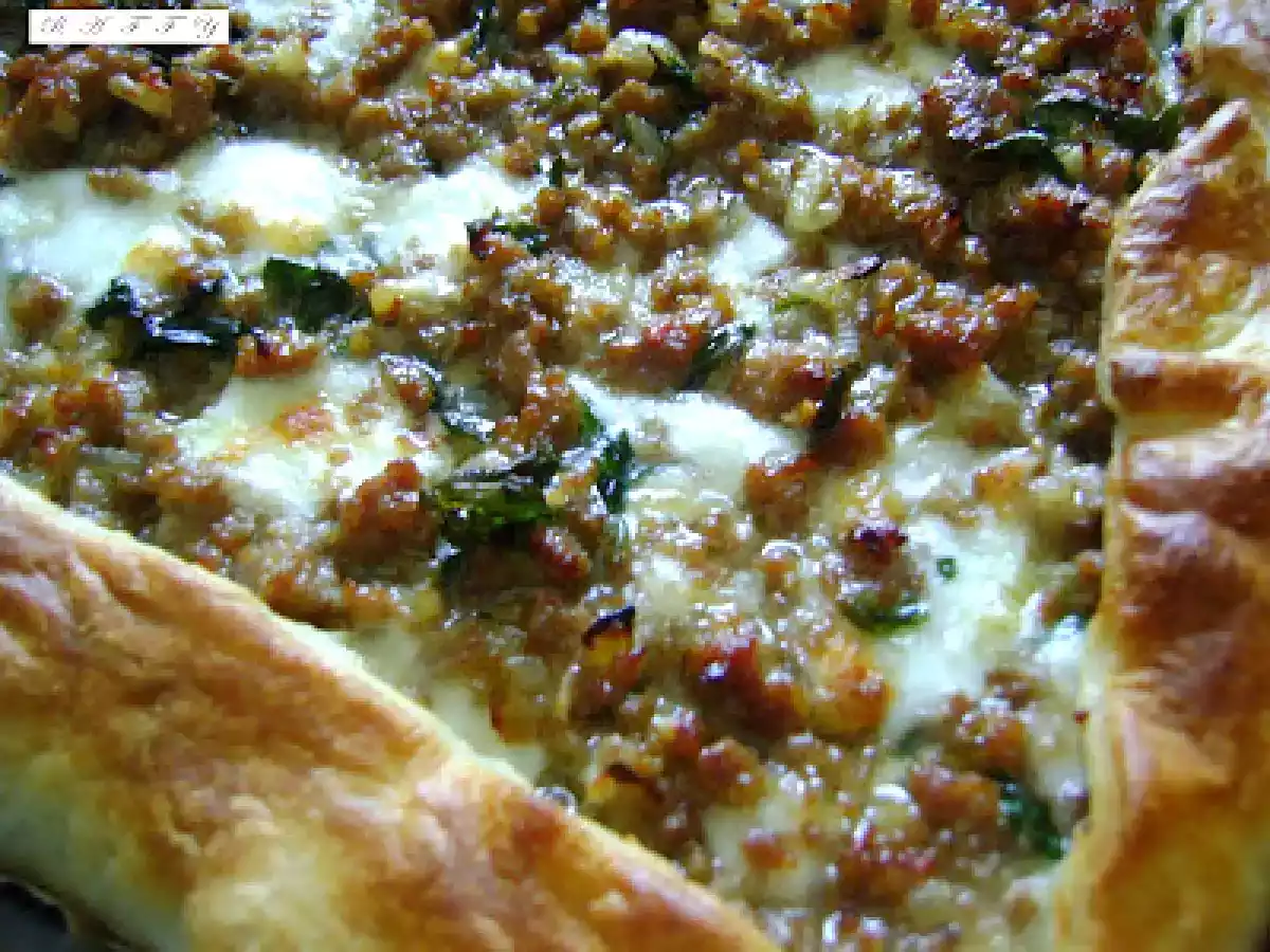 Torta salata con carne macinata PrecedenteProssimo Portata principalefacile30 min Invia questa ricetta ad un amico Stampa la ricetta Contatta l'autore della Ricetta Pubblica la foto di questa ricetta Una ricetta facile e saporita Ingredienti 3 1 pasta sfoglia rotonda 4 hamburger 2 scalogni sale olio prezzemolo 2 cucchiai abbondanti di parmiggiano 1 mozzarella