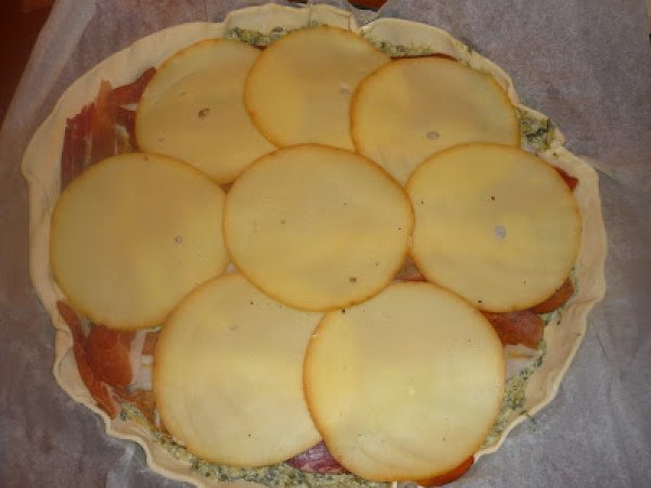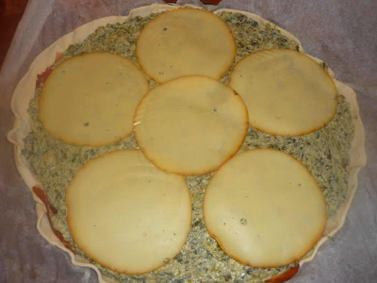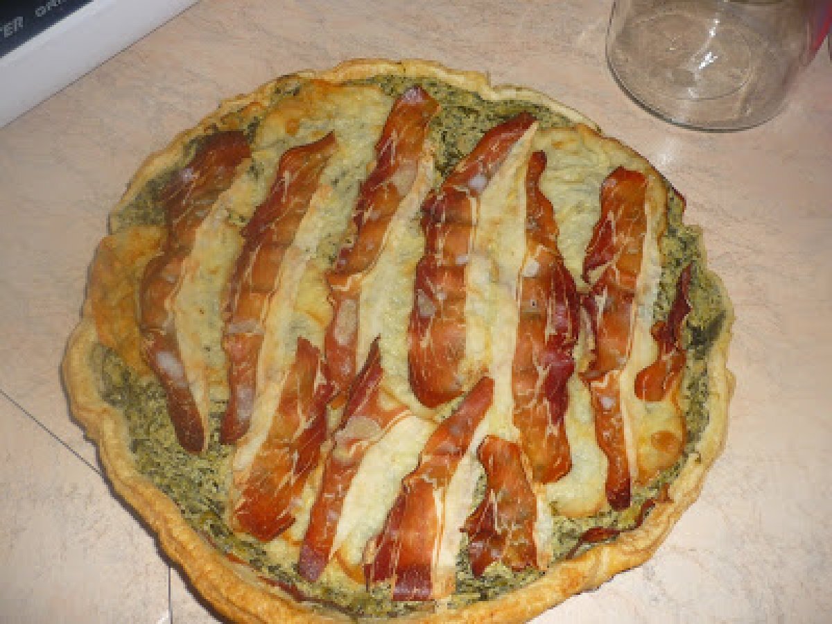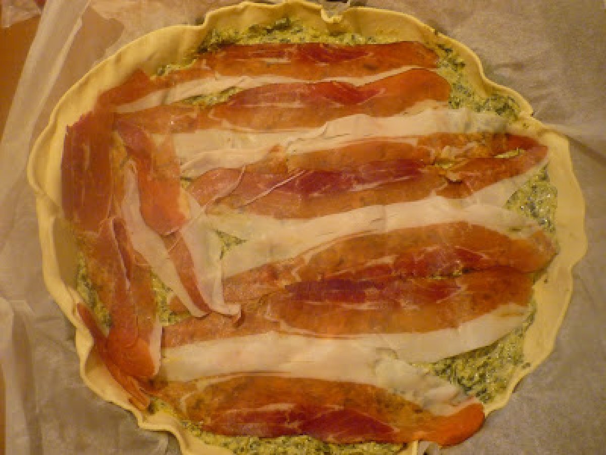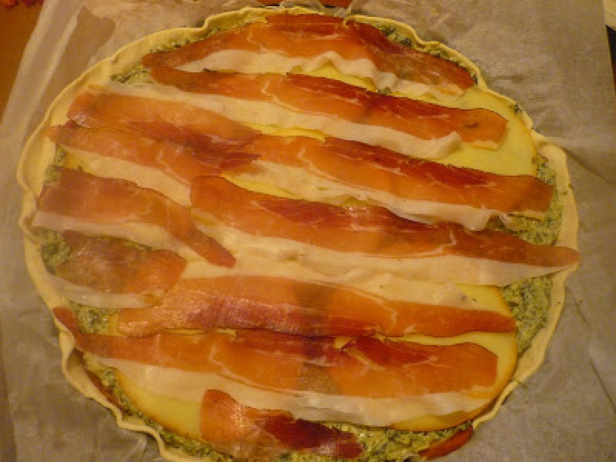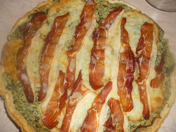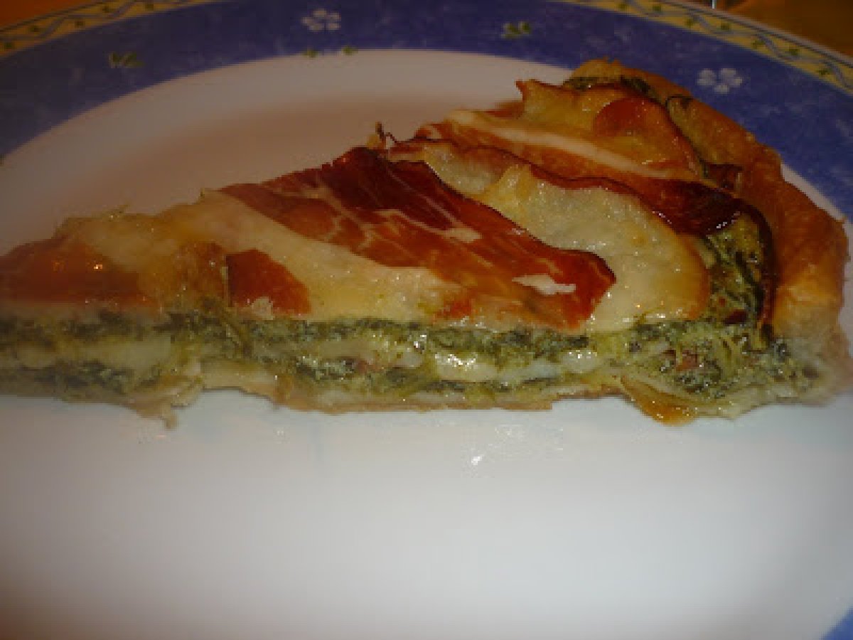 Torta salata con erbette di campo, ricotta, scamorza affumicata e speck PrecedenteProssimo Portata principalemedia1 h 10 m Invia questa ricetta ad un amico Stampa la ricetta Contatta l'autore della Ricetta Pubblica la foto di questa ricetta Ingredienti 4 erbe di campo miste lessate e ripassate in padella con olio e aglio 270 g di ricotta latte q.b noce moscata sale pepe rotolo di pasta sfoglia speck scamorza affumicata a fettine sottili