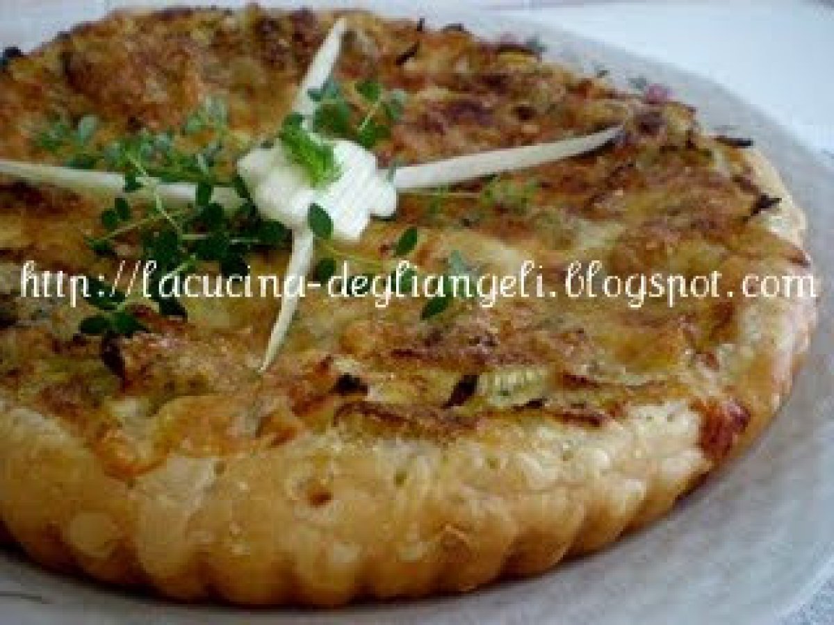 Torta salata con finocchi e gorgonzola PrecedenteProssimo Portata principalefacile1 ora Invia questa ricetta ad un amico Stampa la ricetta Contatta l'autore della Ricetta Pubblica la foto di questa ricetta Una ricetta davvero sorprendente e fantastiche!! Ingredienti 2 250 g di pasta sfoglia 1 finocchio grande o due piccolini 170 g di gorgonzola dolce 2 uova 40 g di grana 1 cucchiaino di semi di finocchio Timo fresco q.b Maggiorana fresca q.b. 25 g di cipolla 1/4 di spicchio d'aglio 40 g di Olio extravergine di oliva Sale e pepe q.b.