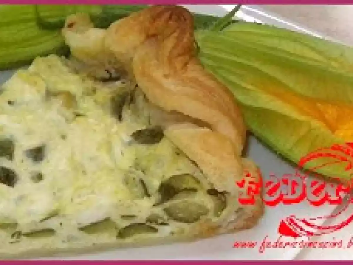 Torta salata cona zucchine e ricotta PrecedenteProssimo Portata principalefacile1 giorno 11 h 20 m Invia questa ricetta ad un amico Stampa la ricetta Contatta l'autore della Ricetta Pubblica la foto di questa ricetta Questi ricette sono realmente succulenti Ingredienti 4 1 rotolo di pasta sfoglia 5 zucchine piccole 150 gr di ricotta 2 cucchiai di parmigiano 1 uovo pepe sale prezzemolo, basilico tritati. prosciutto cotto a cubetti tortiera diametro 26