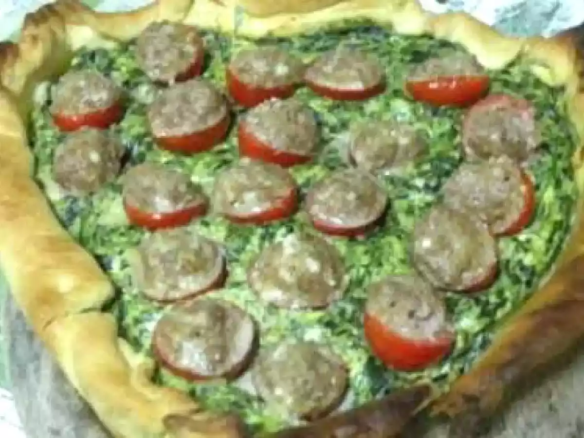 Torta salata di spinaci e ricotta con polpettine nei pomodorini. PrecedenteProssimo Portata principalemedia1 h 30 m Invia questa ricetta ad un amico Stampa la ricetta Contatta l'autore della Ricetta Pubblica la foto di questa ricetta Ingredienti 4 Rotolo di pasta briseè 1 Spinaci surgelati 5 cubetti Ricotta circa 200g Uova 2 Albumi 1 Panna circa 50ml Parmiggiano o grana 4 cucchiai Pomodorini (abbastanza grandicelli) una dozzina Carne macinata (per riempire i pomodorini) poco meno di 100 g Burro, sale, pepe e erba cipollina (io avevo quella secca, ma sarebbe meglio quella fresca) q.b.