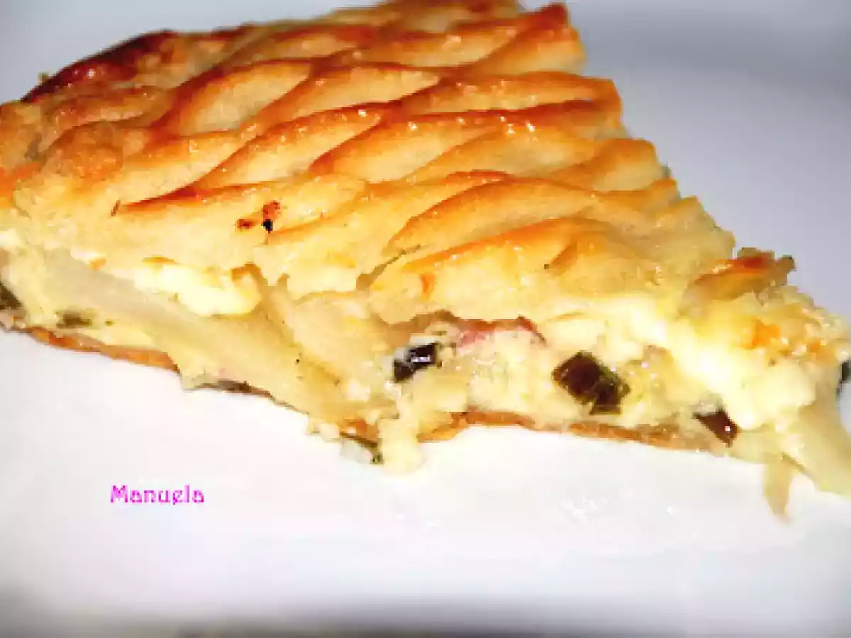 Torta salata:pere , crescenza e pancetta PrecedenteProssimo Portata principalefacile1 ora Invia questa ricetta ad un amico Stampa la ricetta Contatta l'autore della Ricetta Pubblica la foto di questa ricetta Questo piatto ha un gusto di inferno! Ingredienti 1 pasta sfoglia crescenza porro burro pancetta affumicata asiago 1 pera sale pepe 1 uovo