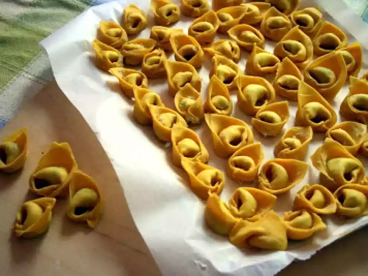Tortelloni ripieni di rucola e prosciutto cotto, con sughetto di pomodori freschi vota adesso PrecedenteProssimo Portata principalefacile40 min Invia questa ricetta ad un amico Stampa la ricetta Contatta l'autore della Ricetta Pubblica la foto di questa ricetta Ingredienti 3 300 g di ricotta 150 g di prosciutto cotto 2 mazzetti di rucola fresca 2 etti di parmigiano grattugiato sale, noce moscata Per la sfoglia: 500 g di farina 3 uova 1 piazzico di sale acqua se serve per amalgamare a temperatura ambiente