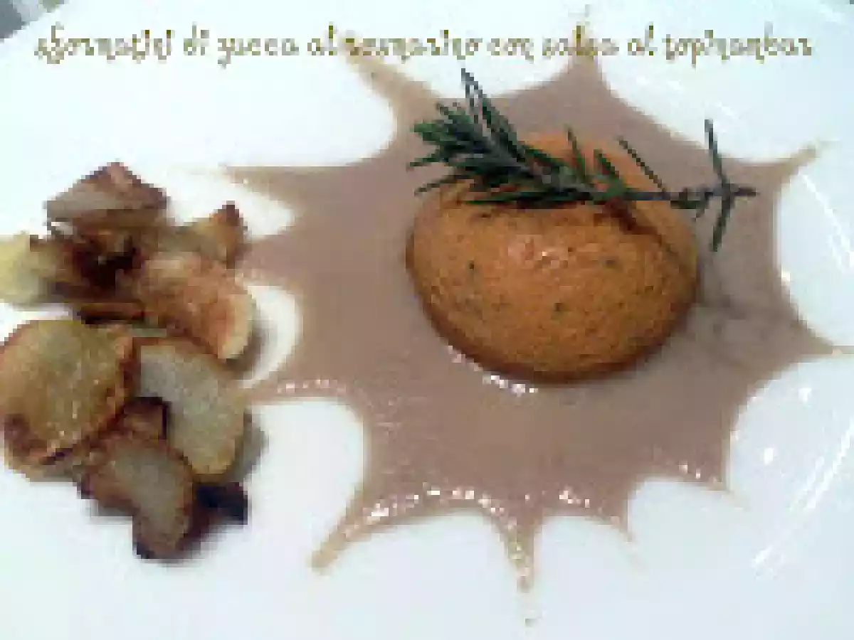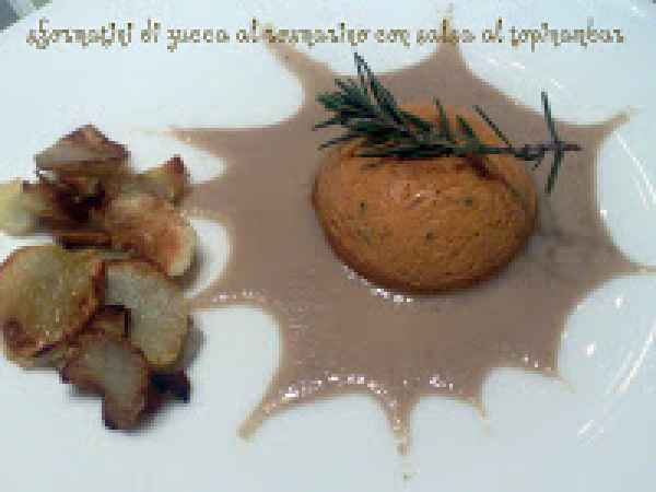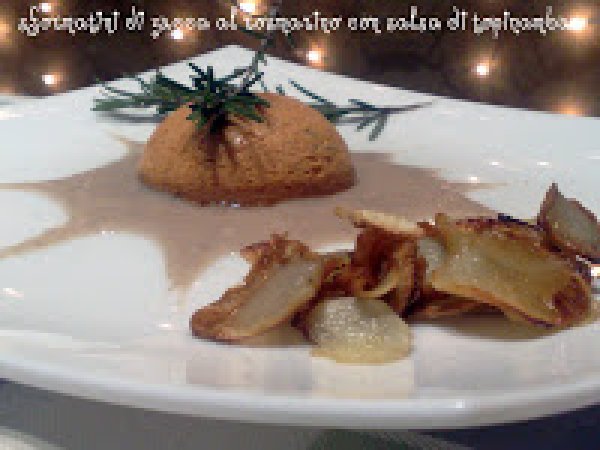 Tortini di zucca al rosmarino con salsa di topinambur e funghi vota adesso PrecedenteProssimo Portata principalefacile1 h 20 m Invia questa ricetta ad un amico Stampa la ricetta Contatta l'autore della Ricetta Pubblica la foto di questa ricetta Ingredienti 4 500 g di zucca 300 di topinambur 120 g di ricotta 3 albumi 30 g di parmigiano grattugiato 20 g di funghi secchi 1 spicchio d'aglio 1 rametto di rosmarino 1 bicchiere circa di latte la buccia grattugiata di mezzo limone sale pepe olio evo