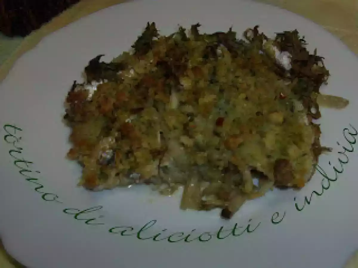 Tortino di alici e indivia PrecedenteProssimo Portata principalefacile40 min Invia questa ricetta ad un amico Stampa la ricetta Contatta l'autore della Ricetta Pubblica la foto di questa ricetta Ingredienti 5 1kg di aliciotti 1kg di indivia riccia di pangrattato o mollica di pane saporita di olio extra vergine d'oliva di sale & pepe