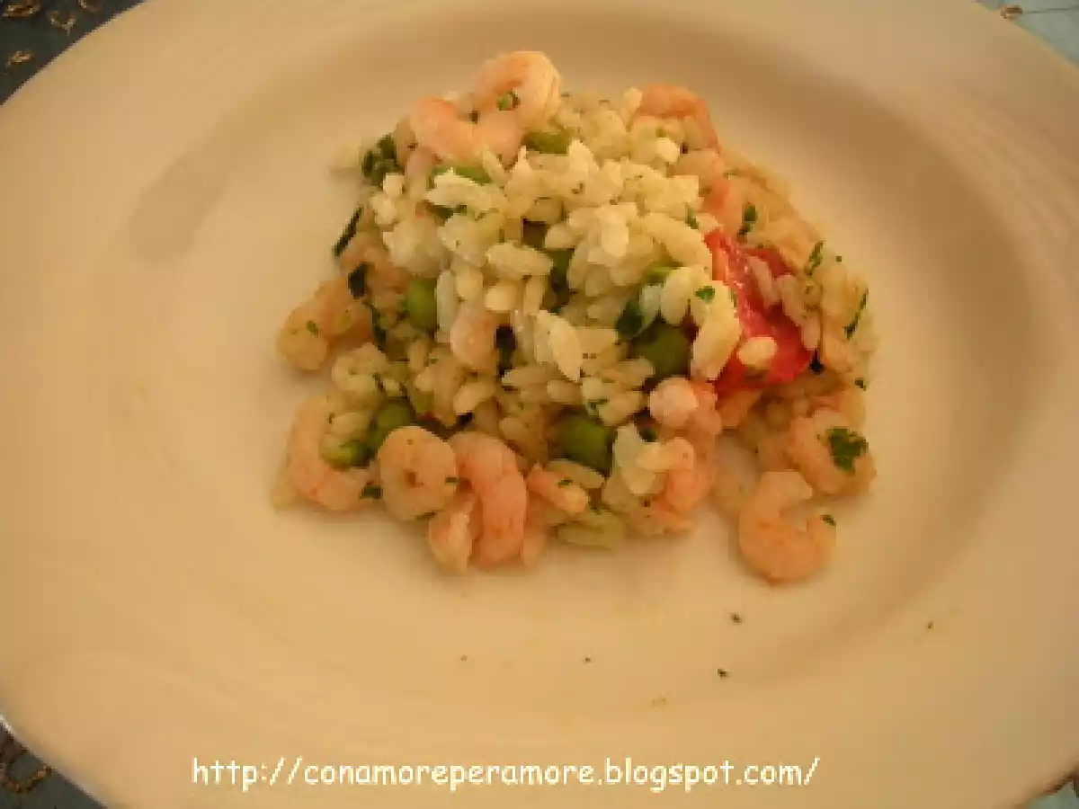 Tris di riso pesce e verdura Portata principalefacile45 min Invia questa ricetta ad un amico Stampa la ricetta Contatta l'autore della Ricetta Pubblica la foto di questa ricetta Ingredienti 4 2 spicchi di aglio 1 mazzolino di prezzemolo 60 g di olio evo 5 pomodorini 700 g di acqua sale q.b 320 g di riso carnaroli 150 g di piselli 4 filetti di trota salmonata 400 g circa oliati e salati 150 g di gamberetti sgusciati