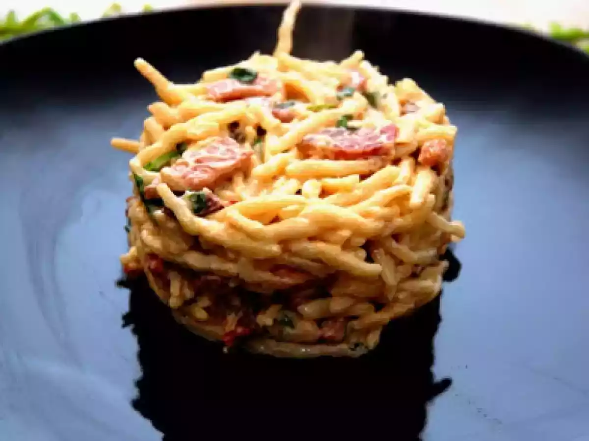 Trofie con speck, panna e rucola