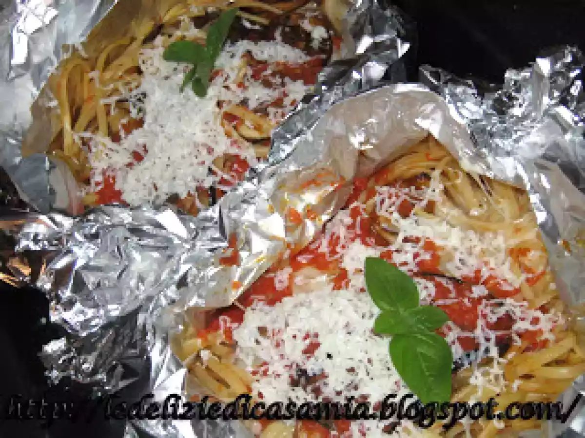 Una ''norma al cartoccio'' Portata principalefacile4 h 20 m Invia questa ricetta ad un amico Stampa la ricetta Contatta l'autore della Ricetta Pubblica la foto di questa ricetta Ingredienti 4 Spaghetti pomodoro fresco circa 1 kg melelnzane fritte provoletta fresca cubettata Insaporitore Ariosto per sughi al pomodoro ricotta salata olio