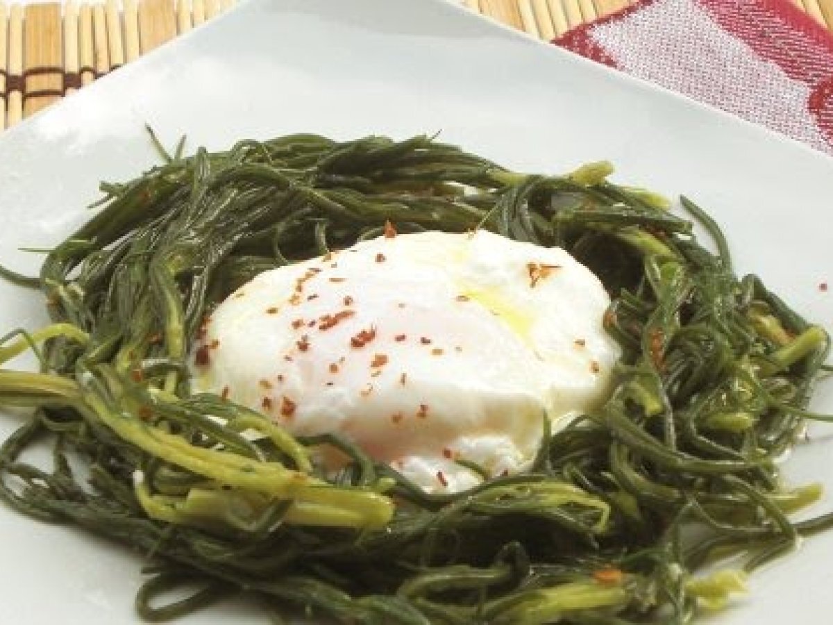 Uova in camicia in nido di agretti