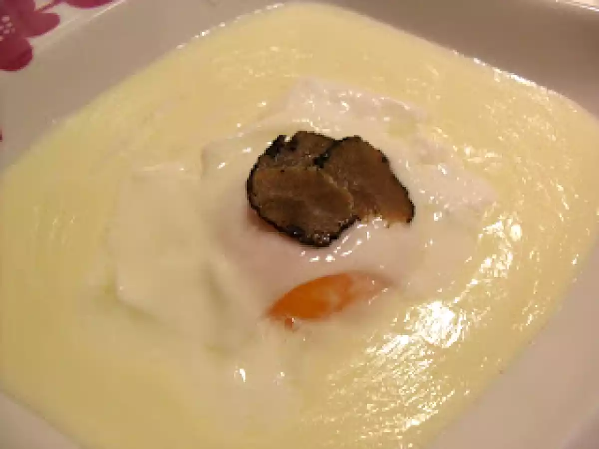 Uovo pochè su crema di pecorino e tartufo Portata principalefacile35 min Invia questa ricetta ad un amico Stampa la ricetta Contatta l'autore della Ricetta Pubblica la foto di questa ricetta Ingredienti 6 pecorino fresco panna fresca 1 tartufo olio aceto bianco acqua