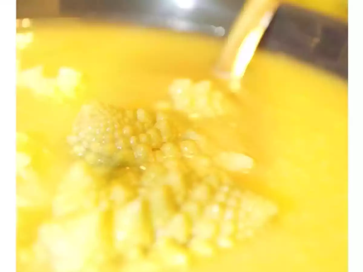 Vellutata di foglie di porro e cavolo romano PrecedenteProssimo Portata principalefacile50 min Invia questa ricetta ad un amico Stampa la ricetta Contatta l'autore della Ricetta Pubblica la foto di questa ricetta Ingredienti 2 1 cavolo romano non troppo grosso foglie di 2 - 3 porri brodo con dado vegetale bimby olio extra vergine di oliva sale e pepe per insaporire