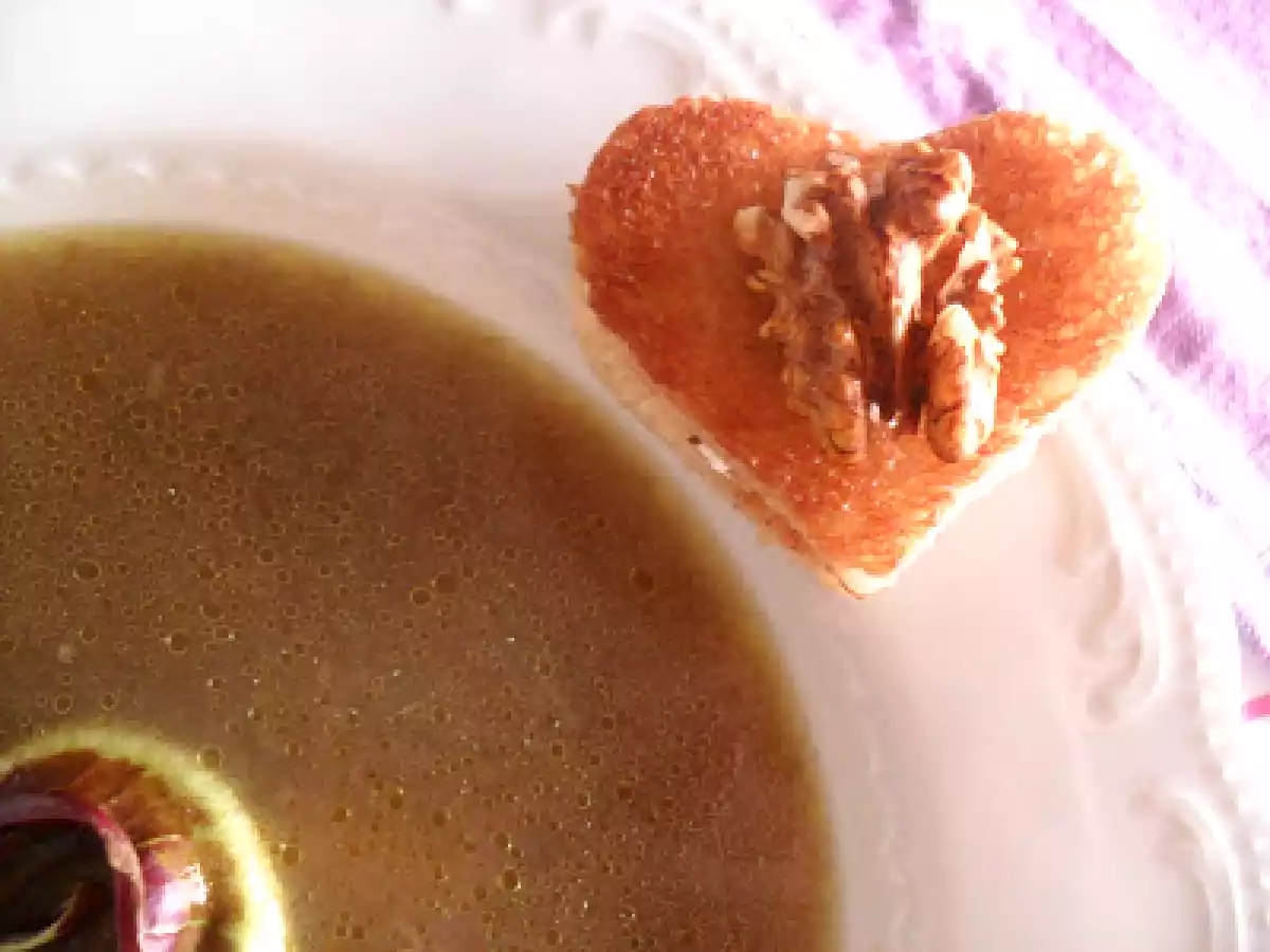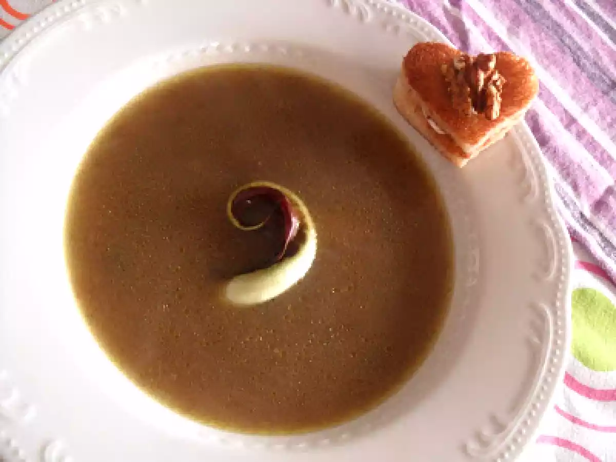 Vellutata di radicchio tardivo con crostini gorgonzola e noci