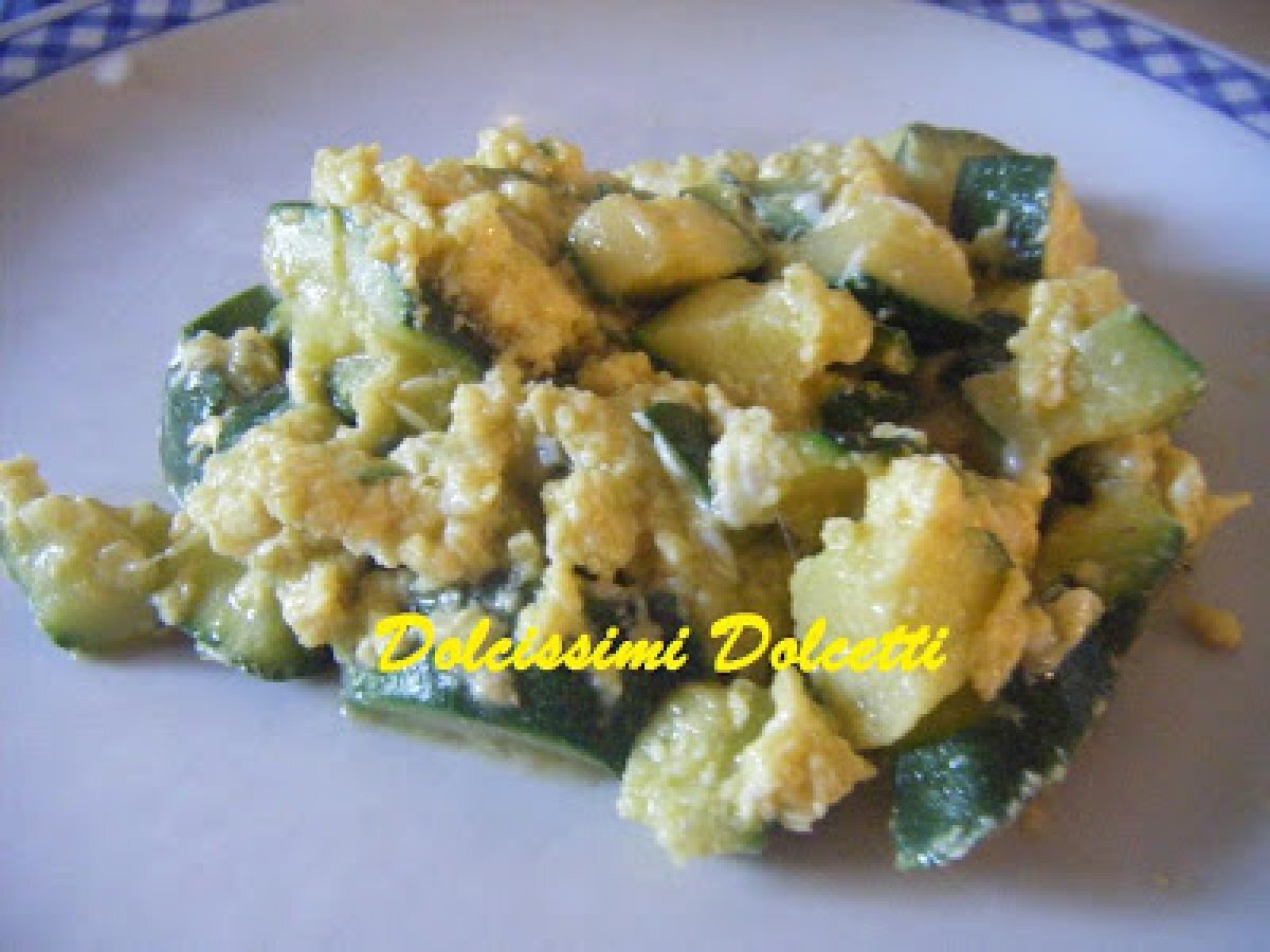 Zucchine con le uova sbattute Portata principalefacile35 min113 Kcal Invia questa ricetta ad un amico Stampa la ricetta Contatta l'autore della Ricetta Pubblica la foto di questa ricetta Ingredienti 5 5 zucchine 3-4 uova poco latte olio sale peperoncino Costo stimato: 4.47Euros€ (0.89€/Porzioni)