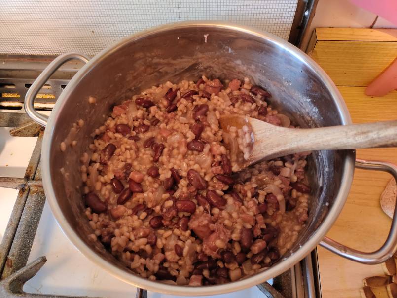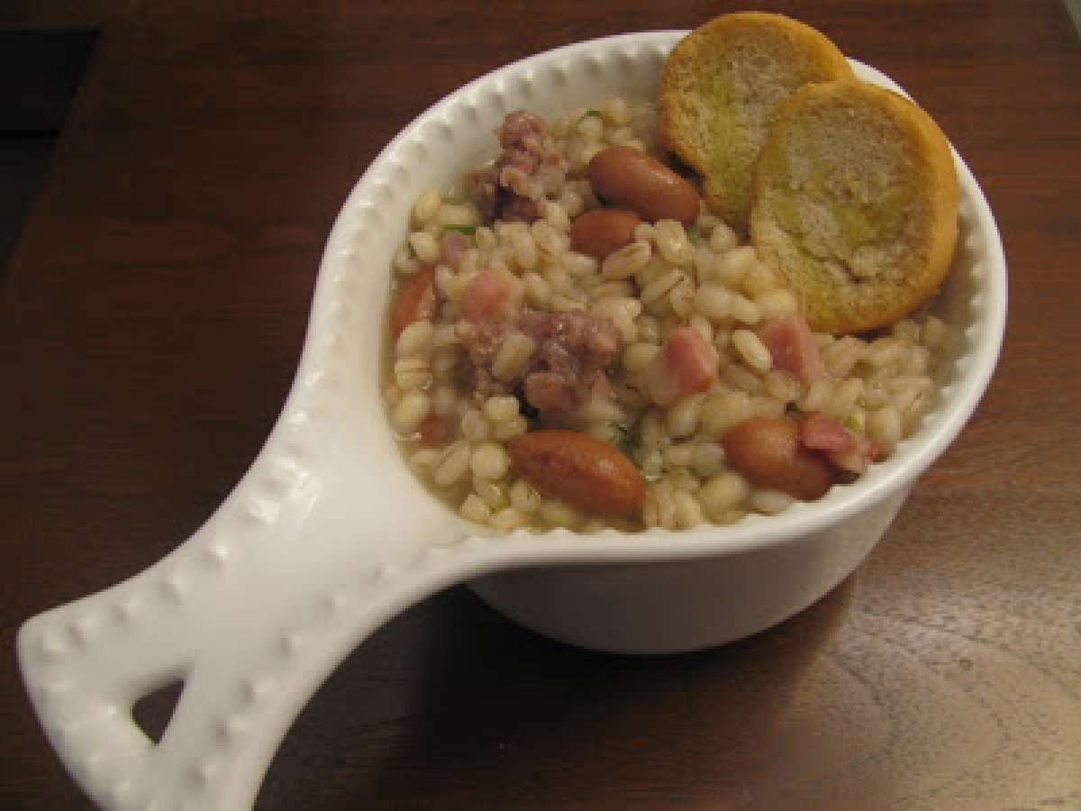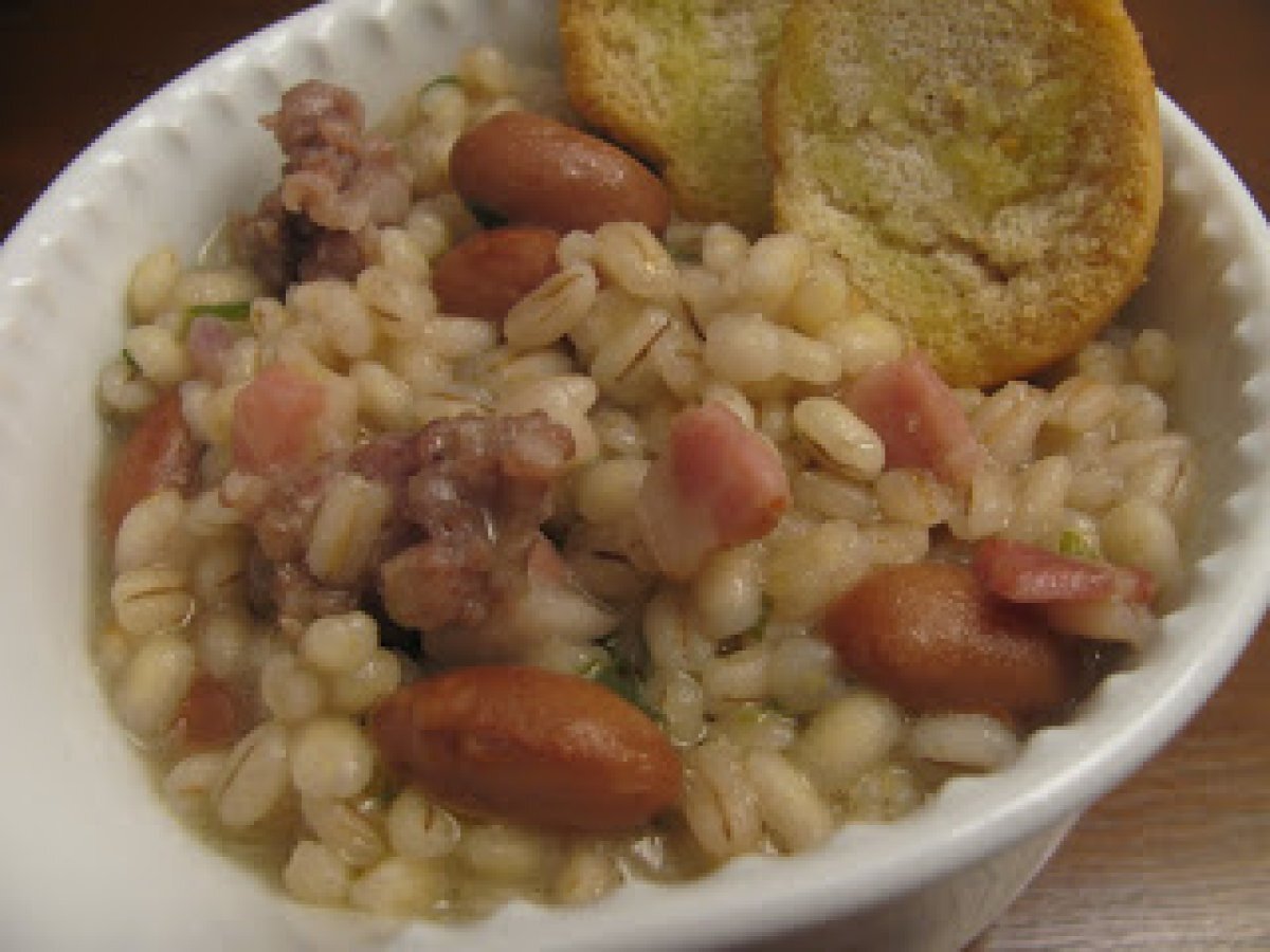 Zuppa d'orzo con salsiccia vota adesso PrecedenteProssimo Portata principalefacile1 h 40 m818 Kcal Invia questa ricetta ad un amico Stampa la ricetta Contatta l'autore della Ricetta Pubblica la foto di questa ricetta Ingredienti 2 200 g orzo perlato 100 g fagioli borlotti 150 g salsiccia 50 g pancetta 30 g burro 1 cipolla piccola 100 cl di brodo di verdure 1 bicchiere di vino rosso 1 foglia di alloro 20 g formaggio grana grattato sale pepe prezzemolo tritato