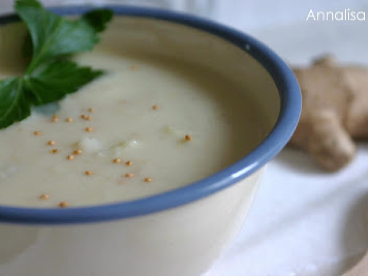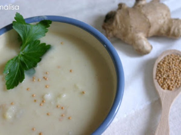 Zuppa di cavolfiore con latte di cocco PrecedenteProssimo Portata principalefacile50 min197 Kcal Invia questa ricetta ad un amico Stampa la ricetta Contatta l'autore della Ricetta Pubblica la foto di questa ricetta Ingredienti 6 1kg di cavolfiore bianco 1 patata piccola 1 cipolla 1l di brodo di pollo 250 ml di latte di cocco 1 cucchiaino di semi di senape 1 pezzetto di zenzero grattugiato 60 ml di yogurt naturale olio extra vergine di oliva prezzemolo sale e pepe Costo stimato: 4.21Euros€ (0.7€/Porzioni)