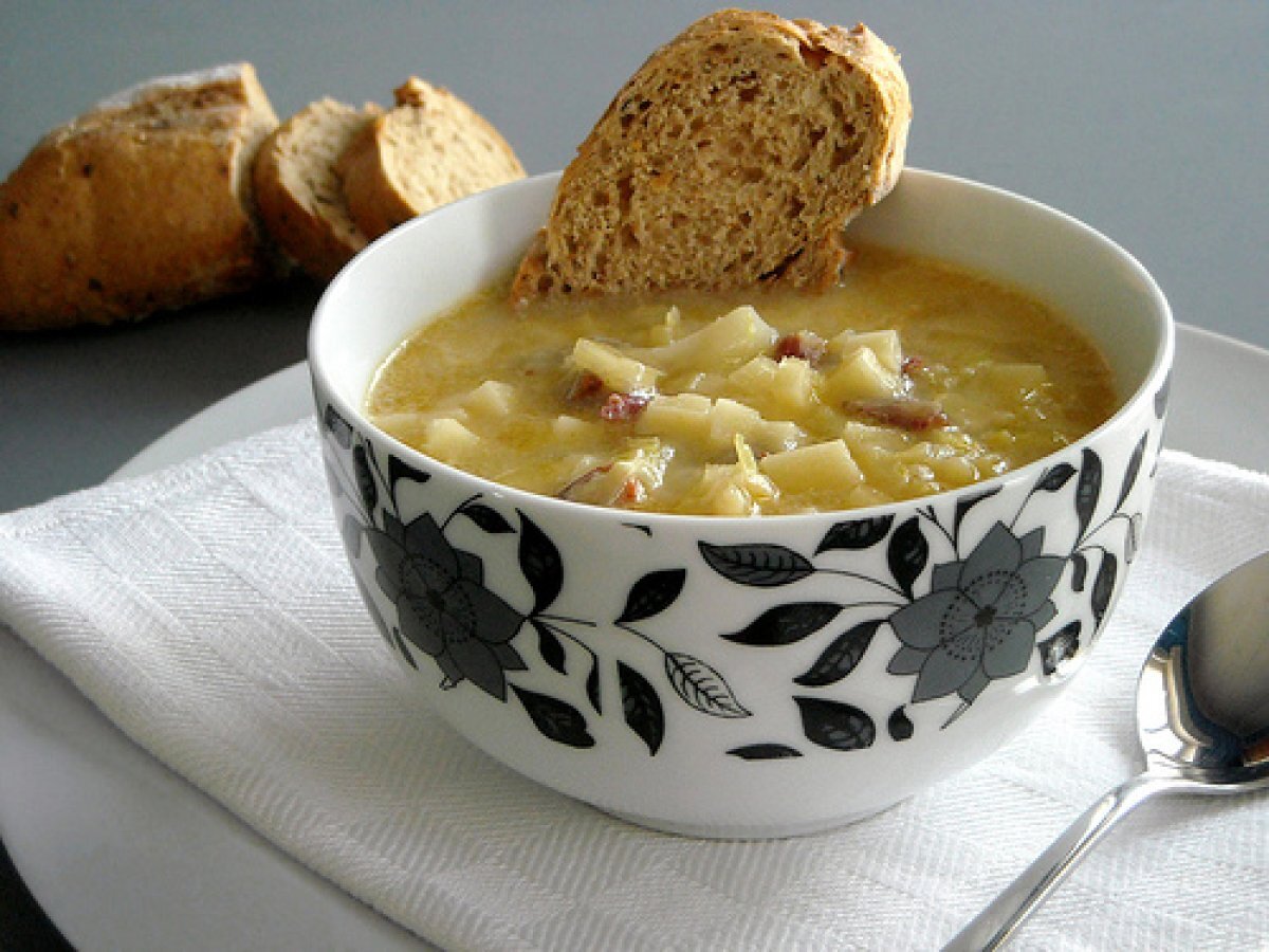 Zuppa di cavolo cappuccio e pancetta PrecedenteProssimo Portata principalemedia1 h 5 m208 Kcal Invia questa ricetta ad un amico Stampa la ricetta Contatta l'autore della Ricetta Pubblica la foto di questa ricetta Servite con fette di pane integrale leggermente tostate. Ingredienti 4 1 carota 1 costa di sedano 1 cipolla 100 g di pancetta a cubetti 2 pomodori perini maturi 300 g di cavolo cappuccio 1 patata 1 bicchiere di latte brodo q.b. poco burro sale e pepe Costo stimato: 3.24Euros€ (0.81€/Porzioni)