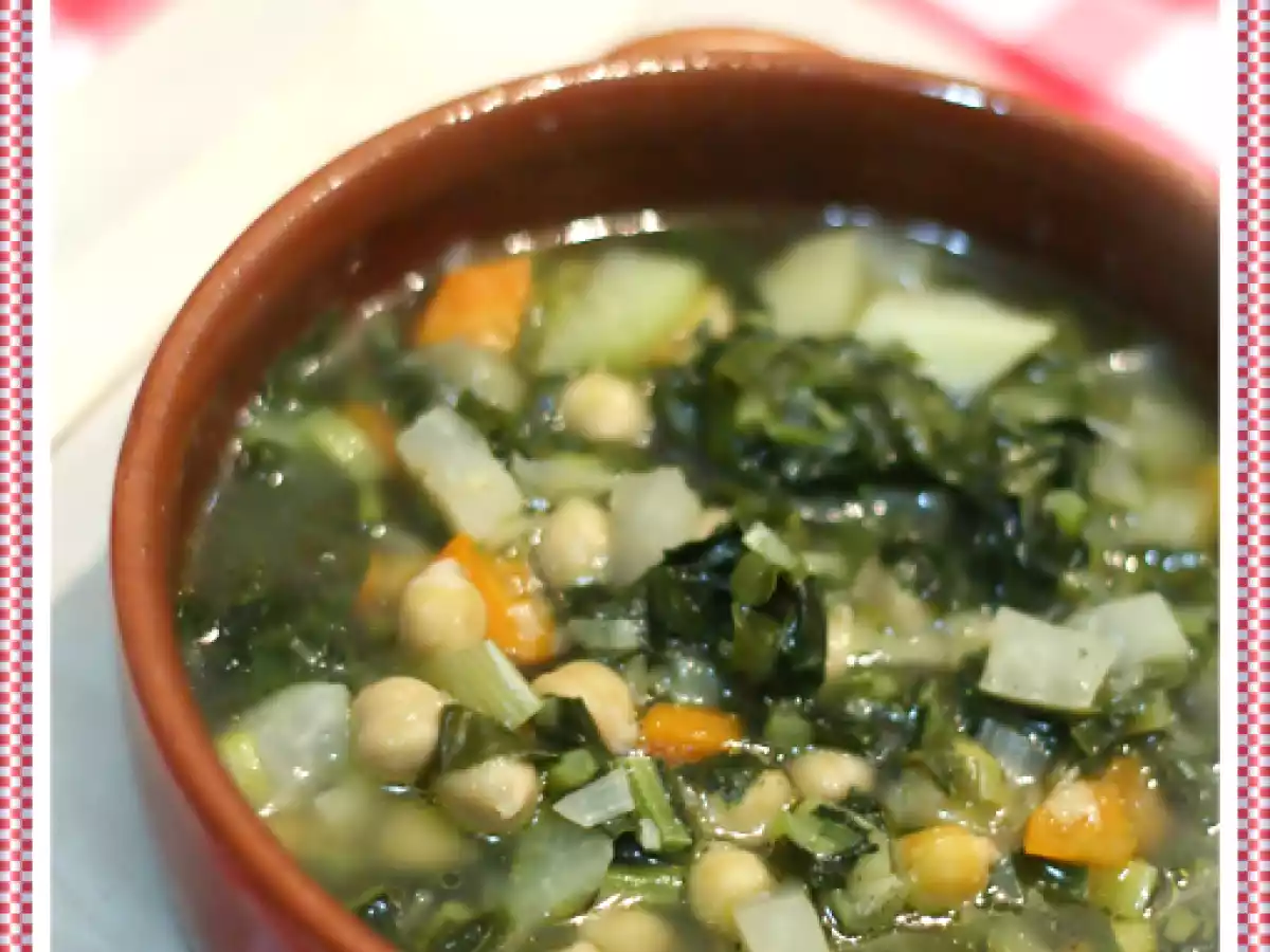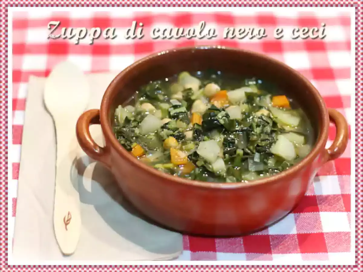 Zuppa di cavolo nero e ceci PrecedenteProssimo Portata principalefacile55 min Invia questa ricetta ad un amico Stampa la ricetta Contatta l'autore della Ricetta Pubblica la foto di questa ricetta Ingredienti 2 1 mazzo di cavolo nero 2 porri piccoli 2 cavoli rapa piccoli 250 g di ceci già lessati 1 carota abbastanza grande olio extravergine di oliva sale qb Miscela di erbespezie Remedia “saporita” brodo vegetale qb