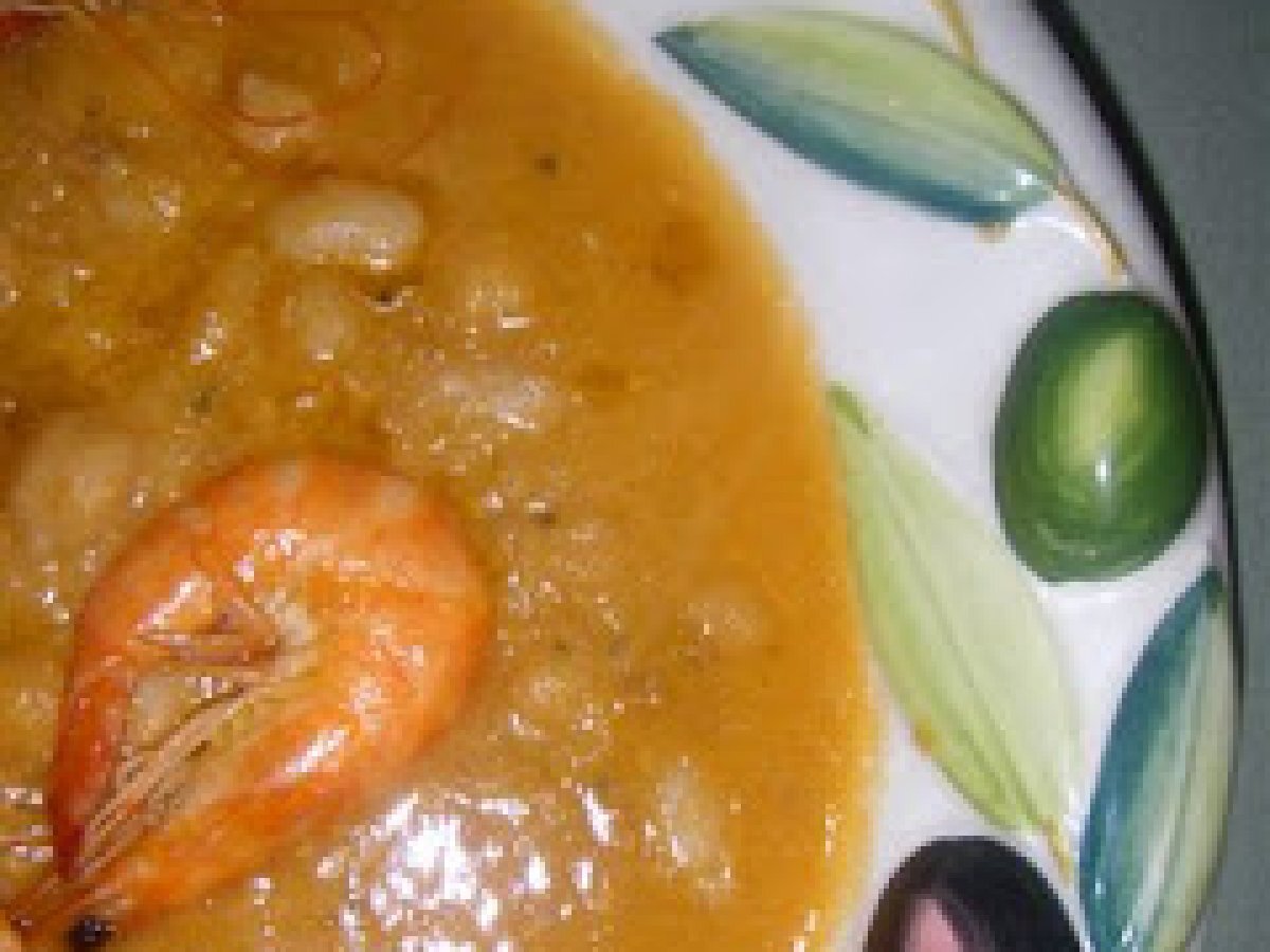 Zuppa di ceci,fagioli e gamberi PrecedenteProssimo Portata principalefacile45 min331 Kcal Invia questa ricetta ad un amico Stampa la ricetta Contatta l'autore della Ricetta Pubblica la foto di questa ricetta Ingredienti 5 500 g di code di gamberi 150 g di fagioli cannellini secchi 150 g di ceci secchi 50 g di lardo un rametto di rosmarino 4 foglie di salvia una foglia di alloro uno spicchio d'aglio 2 cucchiai di triplo concentrato di pomodoro olio extravergine d'oliva sale Costo stimato: 12.46Euros€ (2.49€/Porzioni)