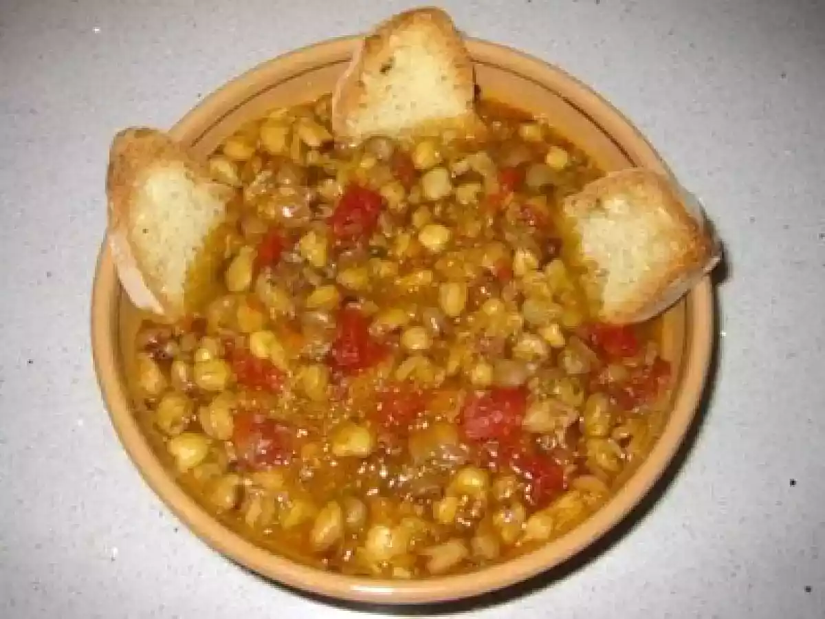Zuppa di cicerchie alla meridionale Portata principalefacile1 ora Invia questa ricetta ad un amico Stampa la ricetta Contatta l'autore della Ricetta Pubblica la foto di questa ricetta Ingredienti 4 600 g di cicerchie 80 g di capperi 200/300 g di filetti di pomodoro olio extravergine di oliva q.b 1 spicchio d'aglio peperoncino q.b. origano q.b.