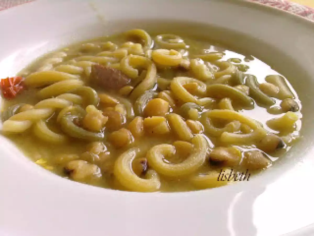 Zuppa di cicerchie con la pasta Portata principalefacile50 min Invia questa ricetta ad un amico Stampa la ricetta Contatta l'autore della Ricetta Pubblica la foto di questa ricetta Ingredienti 4 250 g di cicerchie 2-3 spicchi d'aglio scamiciati 1-2 rametti di rosmarino 3-4 cucchiaiate di prosciutto crudo a dadini sott'olio olio v vino bianco sale, pepe pasta a scelta