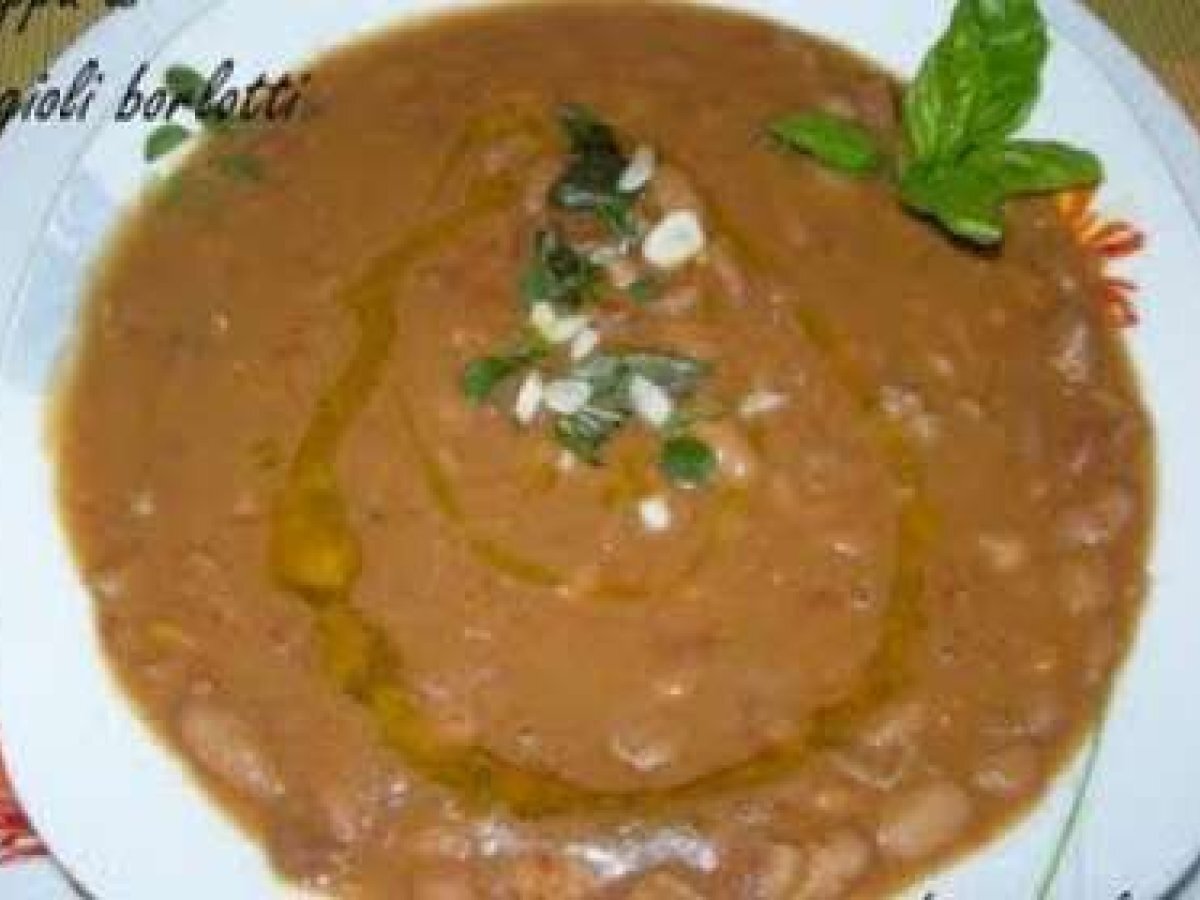 Zuppa di fagioli borlotti PrecedenteProssimo Portata principalefacile3 h 20 m Invia questa ricetta ad un amico Stampa la ricetta Contatta l'autore della Ricetta Pubblica la foto di questa ricetta Ingredienti 4 1 kg di fagioli borlotti freschi, oppure 1/2 Kg di fagioli secchi, da ammollare la sera prima, 80 g. di prosciutto crudo in una sola fetta, 1 carota, 1 scalogno, 1 piccolo gambo di sedano, 2 agli freschi, 5 pomodori piccadilly, oppure 1/2 scatola di pomodori pelati, olio extravergine di oliva, peperoncino, erbe aromatiche (origano e basilco), vanno bene anche altre erbe aromatiche essiccate, eventualmente pane raffermo, sale.