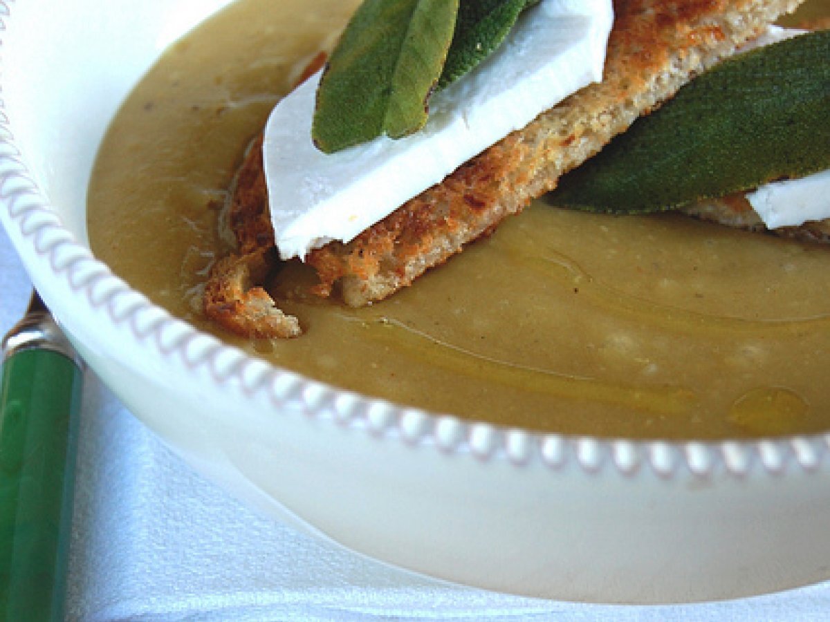 Zuppa di lenticchie rosse con crostini di primo sale e salvia