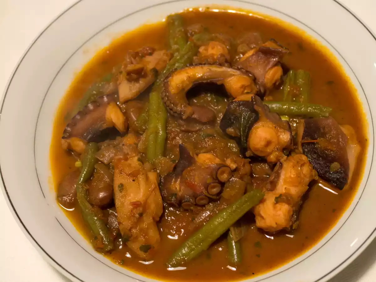 Una zuppa di polipo particolare in cui la tenera struttura del mollusco è ben accompagnata dal gusto deciso dei legumi.