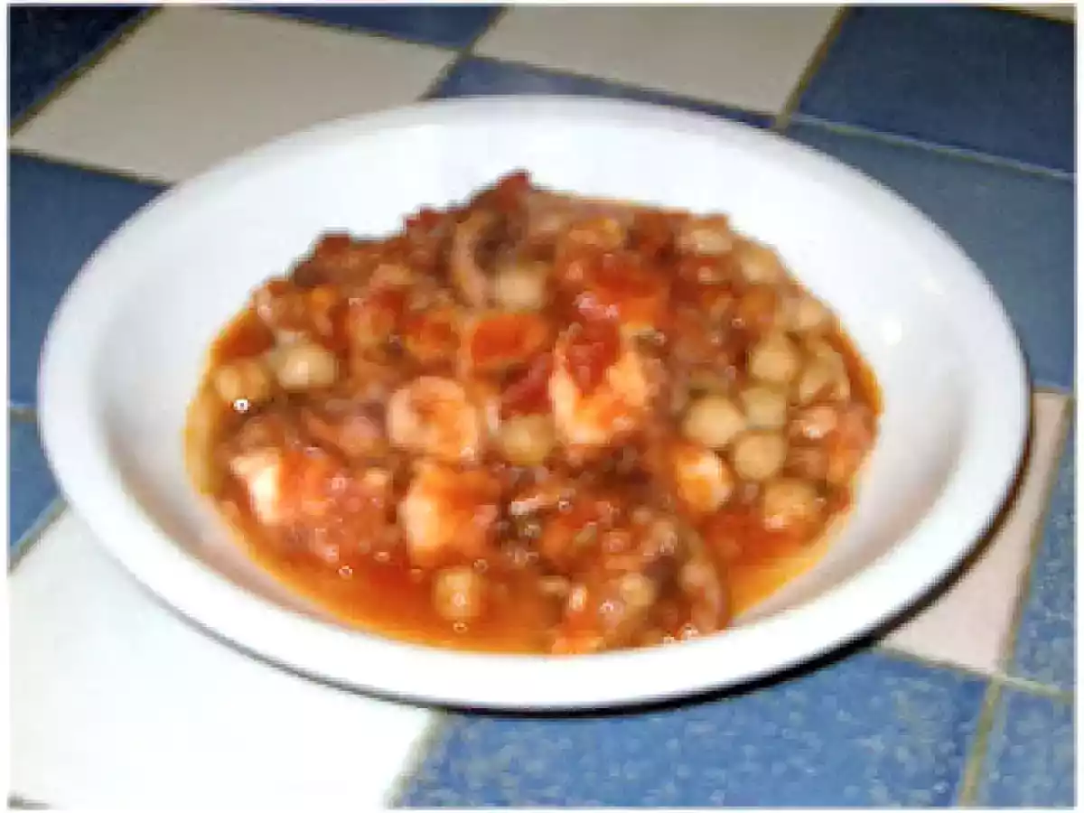 Zuppa di polpo e ceci Portata principalefacile20 h 20 m Invia questa ricetta ad un amico Stampa la ricetta Contatta l'autore della Ricetta Pubblica la foto di questa ricetta Ingredienti 2 200 g di ceci secchi 1 polpo da circa 1 kg 1 bottiglia di passata di pomodoro 1 spicchio di aglio 1 cipolla e mezza 1/2 bicchiere di vino bianco 1 carota 1 gambo di sedano qualche grano di pepe 1 foglia di alloro qualche gambo di prezzemolo sale pepe 1 peperoncino olio extravergine