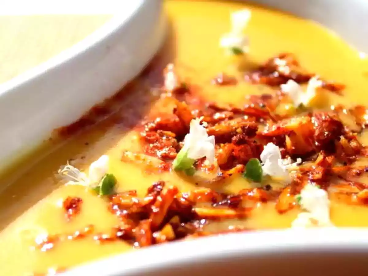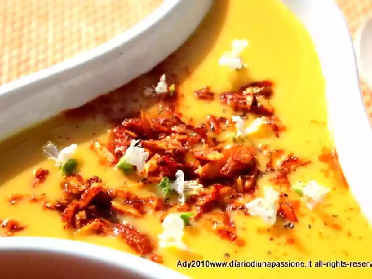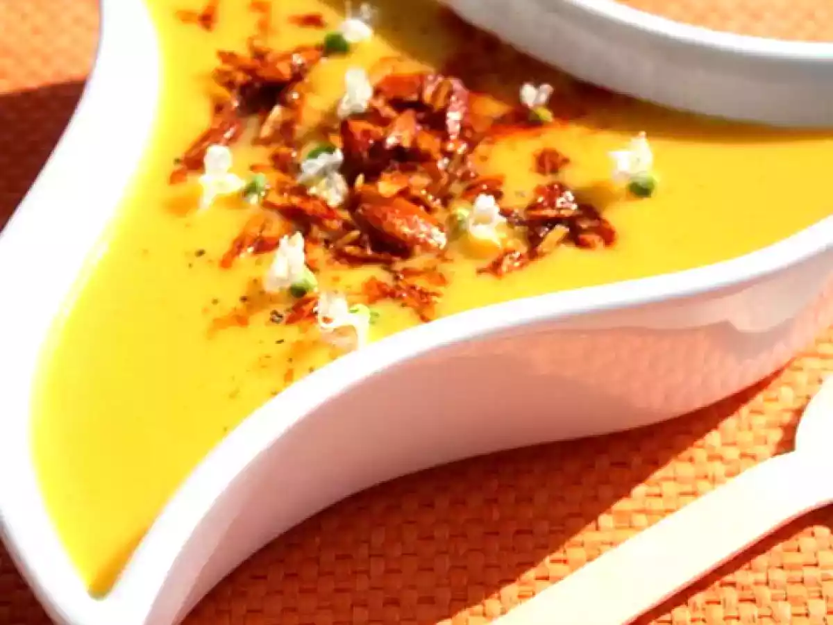 Zuppa di zucca, patate, zenzero e mandorle piccanti vota adesso PrecedenteProssimo Portata principalefacile40 min245 Kcal Invia questa ricetta ad un amico Stampa la ricetta Contatta l'autore della Ricetta Pubblica la foto di questa ricetta Ingredienti 4 1 kg di zucca due piccole patate un pezzettino di zenzero fresco mezza cipolla 2 cucchiai di olio extravergine d’oliva 1 l di brodo vegetale leggero 50 g di mandorle sale e pepe paprika piccante oppure dolce Costo stimato: 5.84Euros€ (1.46€/Porzioni)