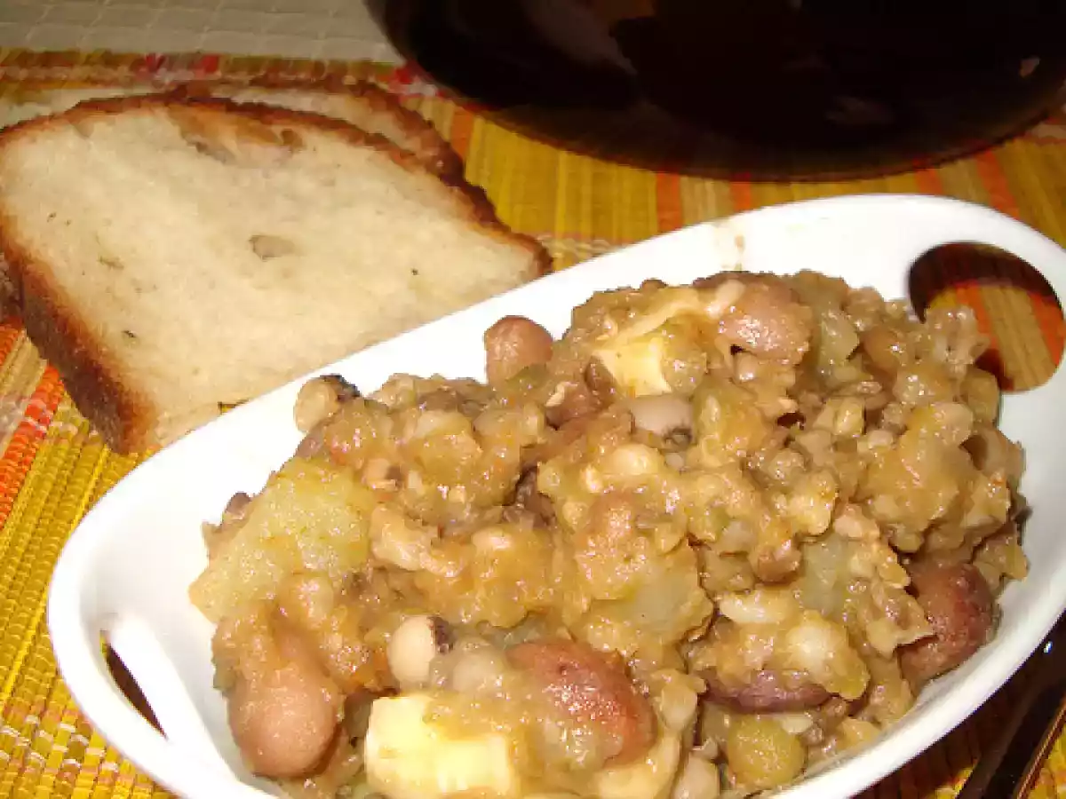 Zuppa tiepida di legumi con patate e caciotta vota adesso Portata principalefacile12 h 15 m Invia questa ricetta ad un amico Stampa la ricetta Contatta l'autore della Ricetta Pubblica la foto di questa ricetta Ingredienti 4 250 g di zuppa di legumi e cereali 1 spicchio d?aglio 2 foglie di alloro Olio, sale e pepe qb 3 patate 150 g di caciotta