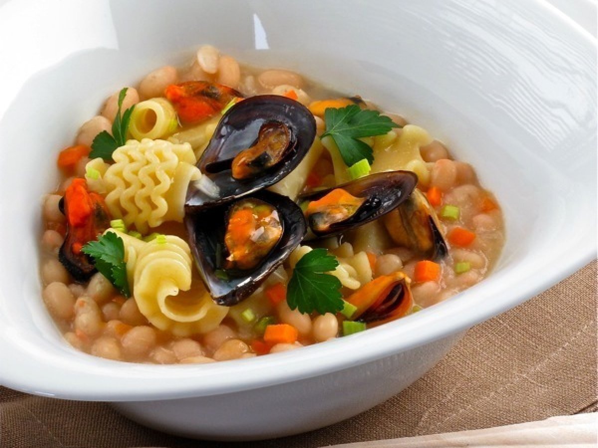 Zuppetta di fagioli del purgatorio con pasta mista e cozze PrecedenteProssimo Portata principalemedia2 h 30 m Invia questa ricetta ad un amico Stampa la ricetta Contatta l'autore della Ricetta Pubblica la foto di questa ricetta Ingredienti 4 250 gr. di fagioli del Purgatorio 1 carota 1 gambo di sedano 1 scalogno 1 foglia di alloro 500 gr. di cozze 120 gr. di pasta mista 2 cucchiai di olio EVO 1 cucchiaino di olio all'aglio sale e pepe q.b.