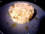Ingredienti: riso 200 gr. mezza cipolla bianca uno spicchio d'aglio 1 bicchiere di vino bianco 100 gr di taccole sbollentate 24 gamberi medi freschi e puliti...