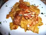 Ingredienti: 10 canocchie 400 g di calamari freschi 400 g di gamberi fumetto di pesce brandy 2/3 cucchiai di concentrato di pomodoro prezzemolo olio...
