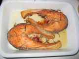 Ingredienti: 1 trancio di salmone fresco 1 filo d'olio d'oliva Sale q.b. Pepe q.b.