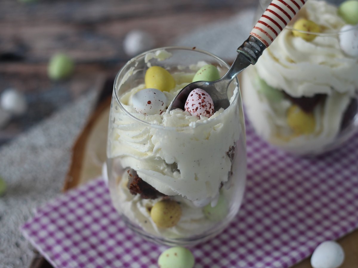 Bicchierini di pasqua con brownie e crema al mascarpone
