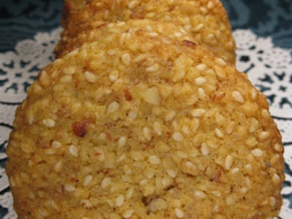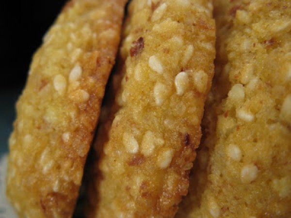 Biscottini al sesamo e mandorle PrecedenteProssimo Snackfacile35 min1377 Kcal Invia questa ricetta ad un amico Stampa la ricetta Contatta l'autore della Ricetta Pubblica la foto di questa ricetta Ingredienti 2 75 g di farina 00 4 g di lievito per dolci 100 g di zucchero di canna 100 g di sesamo bianco 100 g di mandorle con la pellicina 100 g di burro 1 uovo 1 pizzico di sale Costo stimato: 5.23Euros€ (2.62€/Porzioni)