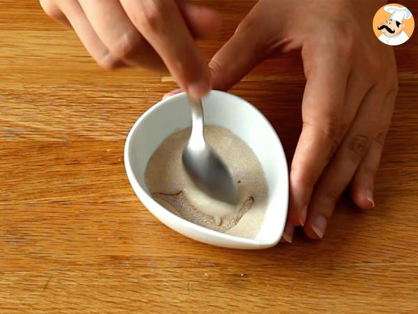 Diluite il lievito nel latte tiepido, poi lasciate riposare per 10 minuti a temperatura ambiente.