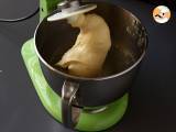 Mescolare il lievito secco con il latte tiepidoe lasciate riposare il composto 10 minuti prima di utilizzarlo. Ora versatelo nella ciotola della planetaria e aggiungete la farina, lo zucchero ed il sale. Quindi impastate per amalgamare tutti gli ingredienti.