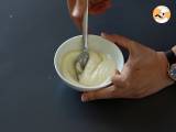 Mescolate in una ciotola il formaggio fresco con lo zucchero a velo e aggiungete il latte, poco alla volta, senza smettere di mescolare. Poi aggiungete l'estratto di vaniglia e mescolate nuovamente per incorporarlo bene.