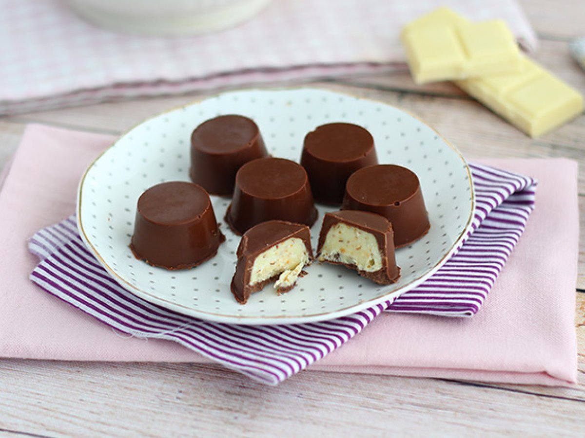 Golosi cioccolatini con un ripieno simile a quello dei Kinder Shocko-Bons. Una ricetta semplice che piacerà a grandi e piccini. Seguite il nostro tutorial video a fondo pagina per prepararli a casa vostra!