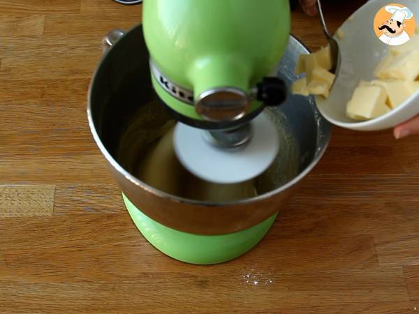 Impastate fino a quando l'impasto si stacca dai bordi. Ora aggiungete il burro morbido tagliato a pezzi poco alla volta (sempre continuando ad impastare). Impastate altri 5 minuti, fin quando l'impasto si staccherà dai bordi.