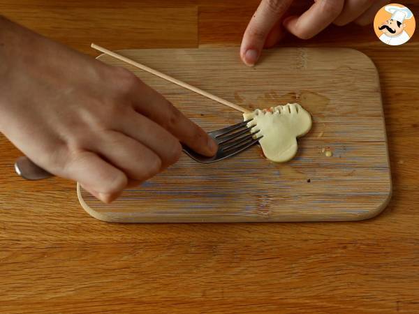 Ora richiudete con un altro cuore di pasta sfoglia e sigillate i bordi con l'aiuto di una forchetta.